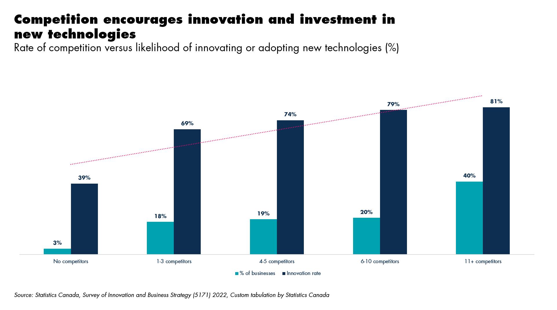 “We’re seeing a significant decline in competition in Canada, and as competition falls, so does the incentive to innovate, leading to fewer choices, higher costs and stagnant wages for Canadians,” says Ismail-Teja. “The reversal of this trend would be significant: more innovation, higher competitiveness, faster growth, and ultimately, a boost to national productivity. The ability to start and scale an idea should be a competitive advantage for Canada; we must be a place where opportunities abound, and entrepreneurs can turn their dreams into a reality.”