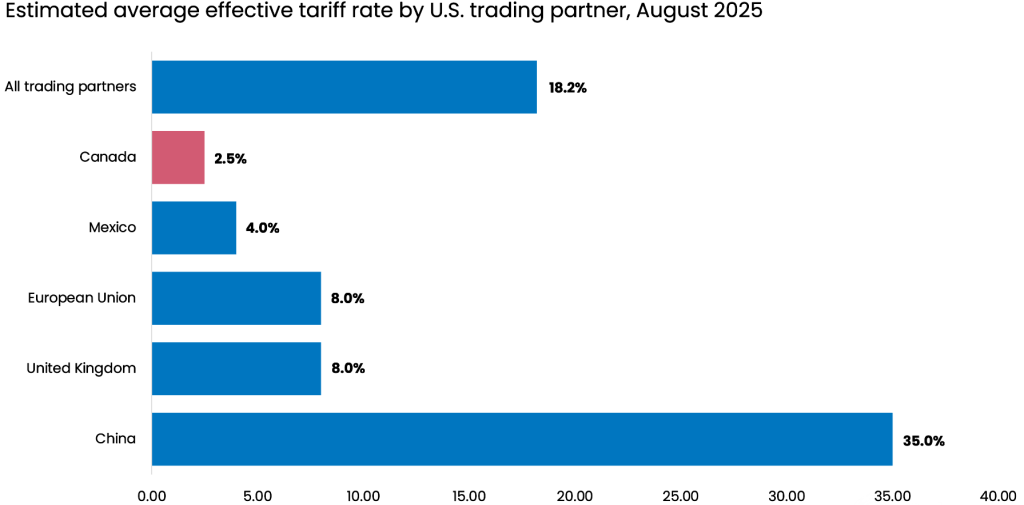 Canada has the lowest effective tariff rate among top U.S. trading partners